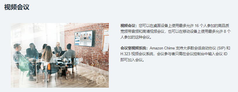 利用Amazon Chime,客户可以: 举办并参加具有高清视频、音频、屏幕共享、会议聊天、拨入号码以及室内视频会议支持的线上会议;在桌面设备和移动设备上利用聊天和聊天室进行持久通信;使用Amazon Chime管理控制台,只需几分钟即可实现管理企业用户、管理政策以及设置SSO等其他高级功能。 Amazon Chime 提供易于使用的应用程序,可用于 Windows、Mac、Web、IOS、Android 设备。 功能特性: 1、网络会议 安排、加入、参与会议。 2、视频会议 您可以在桌面设备上使用最多允许16个人参加的高品质宽频带音频和高清视频会议,也可以在移动设备上使用最多允许8个人参加的这种会议。 3、团队协作 您可以使用Amazon Chime与同事直接、以群聊方式或在聊天室内进行聊天。您可以共享多达 50 兆字节的附件,搜索联系人、对话和聊天室,以及阅读所有设备上的对话。 4、Business Calling 您可以直接从Amazon Chime应用程序拨打和接听电话以及发送和接收短信。 5、安全性和管理 Amazon Chime是一项 AWS 服务,这意味着您可以从旨在满足大多数安全敏感型组织需求的数据中心和网络架构受益。此外,Amazon Chime 具有直接内置于服务中的安全功能。