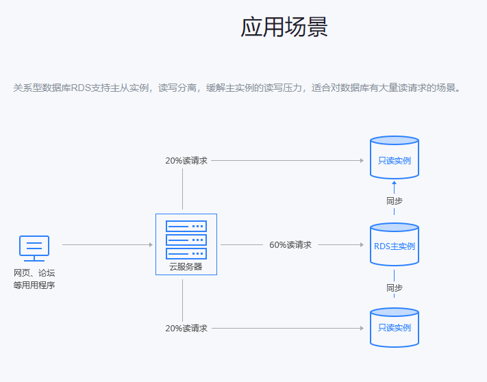 关系型数据库服务(Relational Database Service,简称RDS),通过云服务的方式让关系型数据库设置、操作和扩展变得更加简单。RDS的低成本、高效率、灵活性帮助企业解决费时费力的数据库管理,节约硬件成本和维护成本。目前支持MySQL关系型数据库,与现有商用MySQL完全兼容。 产品优势: SSD全闪存,高性能保障 采用全SSD存储,保证了高性能的TPS/QPS,更加适应OLTP业务。 自动备份 管理透明 支持自定义备份策略,自动备份数据库,防止数据丢失和误删除,保证数据安全可靠。 安全稳定 数据多副本 RDS集群处于多层防火墙的保护之下,可以有力地抗击各种恶意攻击,保证数据的安全。数据储存采用多副本技术,保证数据的稳定。 主从实例 读写分离 支持创建只读实例实现读写分离,缓解主实例的压力,提高数据库可用性。