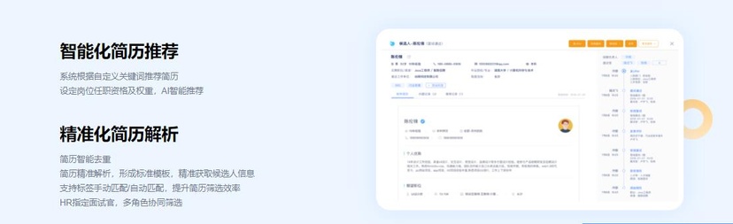 HR向面试官推荐简历,多方在线筛选、评价,各部门面试官可参与招聘全环节,系统自动同步信息,提升协同效率,小程序、公众号等多渠道操作,随时随地移动招聘。