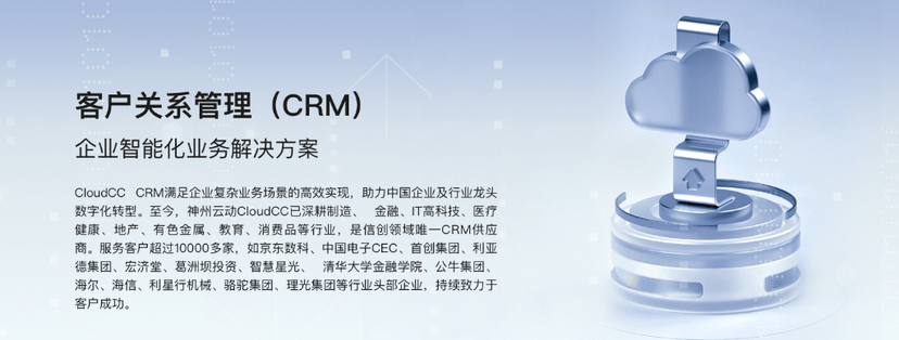 CloudCC CRM满足企业复杂业务场景的高效实现,助力中国企业及行业龙头数字化转型。至今,神州云动CloudCC已深耕制造、 金融、IT高科技、医疗健康、地产、有色金属、教育、消费品等行业,是信创领域唯一CRM供应商。服务客户超过10000多家,如京东数科、中国电子CEC、首创集团、利亚德集团、宏济堂、葛洲坝投资、智慧星光、 清华大学金融学院、公牛集团、海尔、海信、利星行机械、骆驼集团、理光集团等行业头部企业,持续致力于客户成功。
