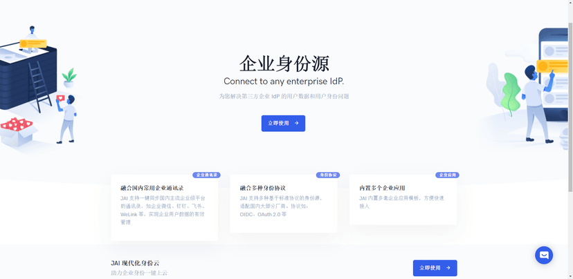 JAI 基于 5A 标准,为企业提供专业、领先、安全的数据管理和权限控制,帮助客户一次性解决身份数据分散、用户管理困难、用户体验极低、安全性极差、缺乏统一管控等难题。 JAI 可为客户实现从身份数据集中管理、访问控制、账号生命周期管理、到安全审计的高效安全、自主可控的身份信息管理。可以帮助客户更好的应对云时代下复杂、繁琐的身份认证和权限管理,帮助客户降低成本、提升运维效率、增强业务协同性,进而提升客户身份数据的整体安全级别。 同时向开发者提供完全免费的开源的产品套件,助力开发者和企业构建自己的云身份认证平台。