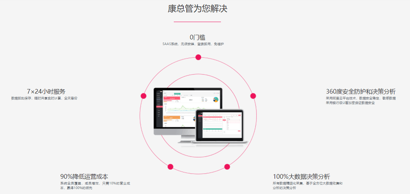 系统根据按摩、SPA、足浴、中医、理疗、养生等业务流程和运营管理而高度抽离出来的健康产业运营系统,运用最先进的互联网产品设计理念,并依赖业务中产生互联网大数据并进行数据挖掘,来达到优化业务流程管理,提供管理决策辅助手段,提升运营管理效率。 产品功能: 1.康总管基础系统:集预约系统,房间管理,技师管理,智能排钟管理,前台收费系统,运营数据分析系统,会员管理系统,财务统计等。 2.大数据分析及预测:云端预测分析最近营业收入,人流,收支等数据,为绩效考核提供有效的预测分析,最大程度提升门店决策效率和效益产出。 3.云健康管理:云端管理客户健康资料及历史调理方案,对客户进行精细化管理,对每个客户健康养生状态了如指掌。 4.CRM与移动互联:突破传统客户关系管理系统,以更精准的方式与客户建立深层次管理,从消费关系上升到服务关系层次,实现真正的随时随地为客户服务。 5.移动电子卡券:客人只需一个手机即可管理会员卡、优惠券、疗程卡等卡券,随时随地随手支付及查看消费情况。 6.连锁管理:多店连锁同步在线实时监控管理,随时随地获得连锁店铺运营情况及财务数据。
