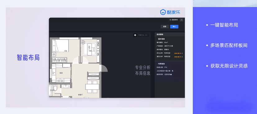 智能设计核心功能 一键智能布局,多场景匹配样板间,获取无限设计灵感 精品样板间 海量风格实现你的样板间自由 智能布局 AI 多布局供你选,超级户型可调整,全新布局体验让你实现布局更快更多更开心 智能匹配 全案,硬装,软装,定制,让你的设计一键生成!