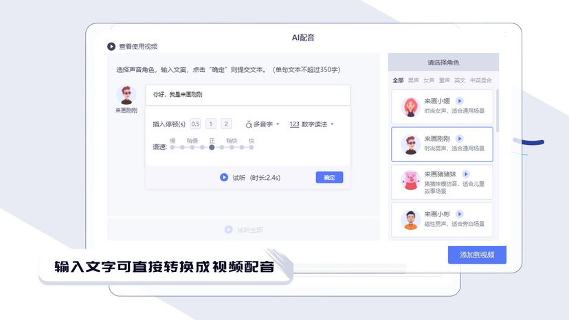来画动画还支持PPT一键导入转视频功能、AI智能配音功能、团队协作功能等,打破传统视频的生产模式,降低短视频制作成本,让制作变得简单、高效。