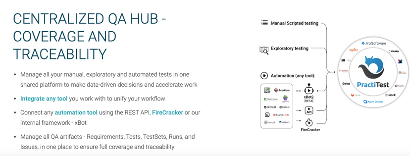 PractiTest是一个端到端的SaaS测试管理平台,它将所有QA工作、流程、团队和工具集中到一个平台中,以弥合孤岛,统一沟通,并在整个组织中启用一个事实来源。借助PractiTest,可以根据可定制报告、实时仪表板和动态过滤视图提供的端到端可见性做出明智的数据驱动决策。提高团队的生产力;重用测试元素以消除重复性任务,根据AI生成的见解计划团队的工作,并使团队能够专注于真正重要的事情。PractiTest可帮助将测试操作与业务目标保持一致,并更快地交付更好的产品。