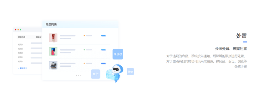 高效自动化渠道管理工具,挖掘数据价值。利用大数据监控技术,极速查杀违规商品,有效拉升品牌客单价,为品牌招商铺垫基础 支持定向监控经销商的定价、销售等情况,为商家提供有效的渠道情报,促进销售。 产品功能: 巡店 机器人自动巡店,识别违规,千巡机器人,根据配置的关键词或指定店铺以及巡店频率,自动对各渠道进行扫描,及时发现违规,定时复查违规 处置 分级处置、按需处置 对于违规的商品,系统按先通知,后投诉的顺序进行处置,对于重点商品同时也可以采取溯源、律师函、诉讼、调查等处置手段 产品优势: 大数据监测 千巡自动巡店监测系统,覆盖国内外主流的电商平台100+,支持全天候7*24小时进行数据监测 自研模型 集成NLP、图像识别、机器深度学习算法的AI系统,覆盖电商、视频、图片、直播、文字全局知识产权监测 自动化巡店,标准化执行 自动巡店,违规自动识别、自动通知、自动复查、自动收编,实现机器自动化,人工少参与