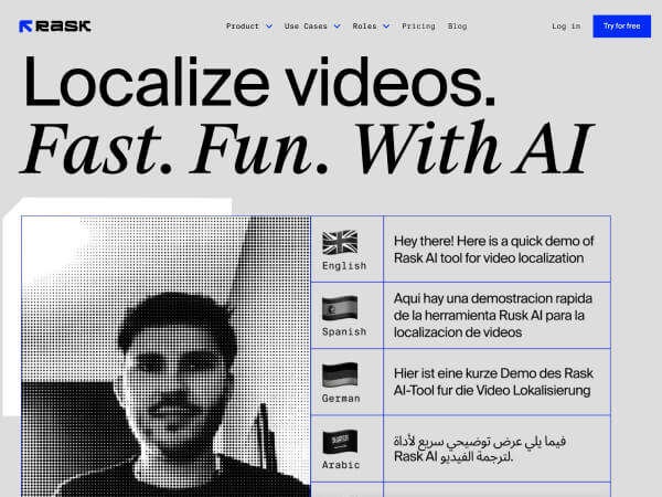 Rask是一款AI视频本地化解决方案,能够帮助用户快速创建多语种版本的视频内容。该软件基于人工智能技术,可以自动识别视频中的语音内容并转录为文字,随后将文字翻译成用户需要的目标语言,并将其同步到视频中。