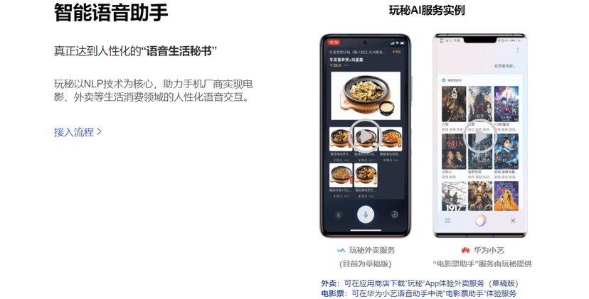 玩秘于2017年在北京成立,是一家生活领域的NLP助理云服务提供商,能在电影、酒店、到店用餐、外卖等场景完成从人机对话到订单支付的闭环。玩秘采用GUI(图像交互)与VUI(语音交互)相结合的形式进行用户交互,与Siri等语音助手的简单百科式问答不同,玩秘强调语义深层次理解、思考和分析能力,模仿人类复杂的决策过程,做出基于众多数据和因素的智能决策和推荐。