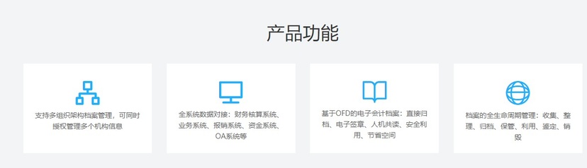 帮助企业构建完善的电子档案管理系统,有效管理企业经营活动获得凭证、内部管理凭证、会计结算凭证等,实现交易数据与企业的合同、业务表单等信息的匹配,提高企业管理效率,规避管理风险。 产品功能如下: 支持多组织架构档案管理,可同时授权管理多个机构信息; 全系统数据对接:财务核算系统、业务系统、报销系统、资金系统、OA系统等; 基于OFD的电子会计档案:直接归档、电子签章、人机共读、安全利用、节省空间。