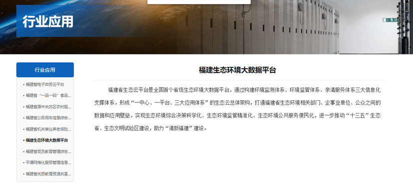 福建省星云大数据应用服务有限公司是福建省政府授权的省级政务信息外包服务主要提供商、省级政务信息开放开发特许经营主体和央企、外企、民企对接合资合作重要窗口。公司围绕“云+公共能力平台+大数据应用服务”发展战略快速布局,自主投资建设福建省电子政务云平台和“位置服务”“物联网”“视频能力”“多卡融合”“大数据开发”“海丝卫星数据服务中心”六大底层能力公共服务平台,基于基础能力平台为政府、企业、行业提供云和数据服务支撑。 公司落实集团部署,在信息融合创新产业主动布局,先后承接了福建省洪水预警报中心福建省数字水安视频监控系统、福建省城市供水水质监测信息系统、世界银行贷款医改促进项目福建省县域医疗卫生信息化项目、福建省应急通信工程、福建省生态云(生态环境大数据)平台、福建省党员教育管理综合服务平台(“党员e家”)、福建省优质教育资源共享支撑工程、福建省“一品一码”食品安全信息追溯管理平台、平潭网格化服务管理信息平台等多个省级行业大数据示范应用。其中,“党员e家”和“福建省生态环境亲清服务平台”入选第二届数字中国峰会数字福建电子政务十佳案例。