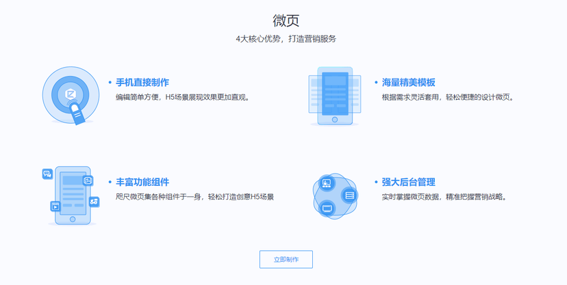 为用户提供微信小程序营销工具,微页H5快速开发的平台